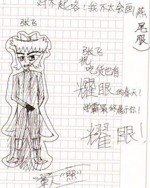 要选用不带横线的本子做手帐,都是白纸的,这样写字比较自由,写多写少都不要紧。正如我们小编做的《三国漫话作文》,会是那种孩子愿意收藏和记录的书。这么说是有根据的,因为,我们小编平时会做《作文总动员》,也会用小编形象跟读者打交道,不断地收到读者来信。孩子们对角色感兴趣就会去画画。会记得书里角色说的话,记住他们的性格,会记得书里角色说的话,记住他们的性格。因为在书里,张飞的作文写得特别烂,小读者就寄过来人物画像,如下图: