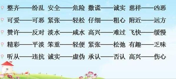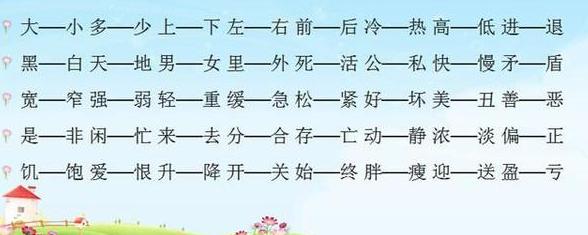 接下来我对小学常用的反义词做了一下归类小结,仅供参考!