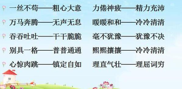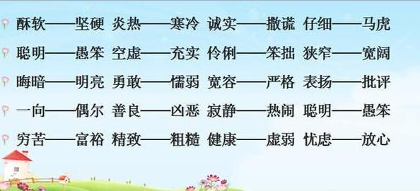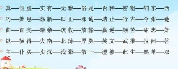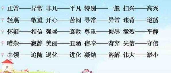 少儿期刊反义词可以说是让多数同学头疼的一个知识点,说实话这个知识就连很多老师都很为之郁闷,因为有的词就是有好几个反义词,而且每一个都可以说是正确答案,这就为同学的记忆和掌握增加了难度,但恰恰就是因为这一点也为同学降低了难度。